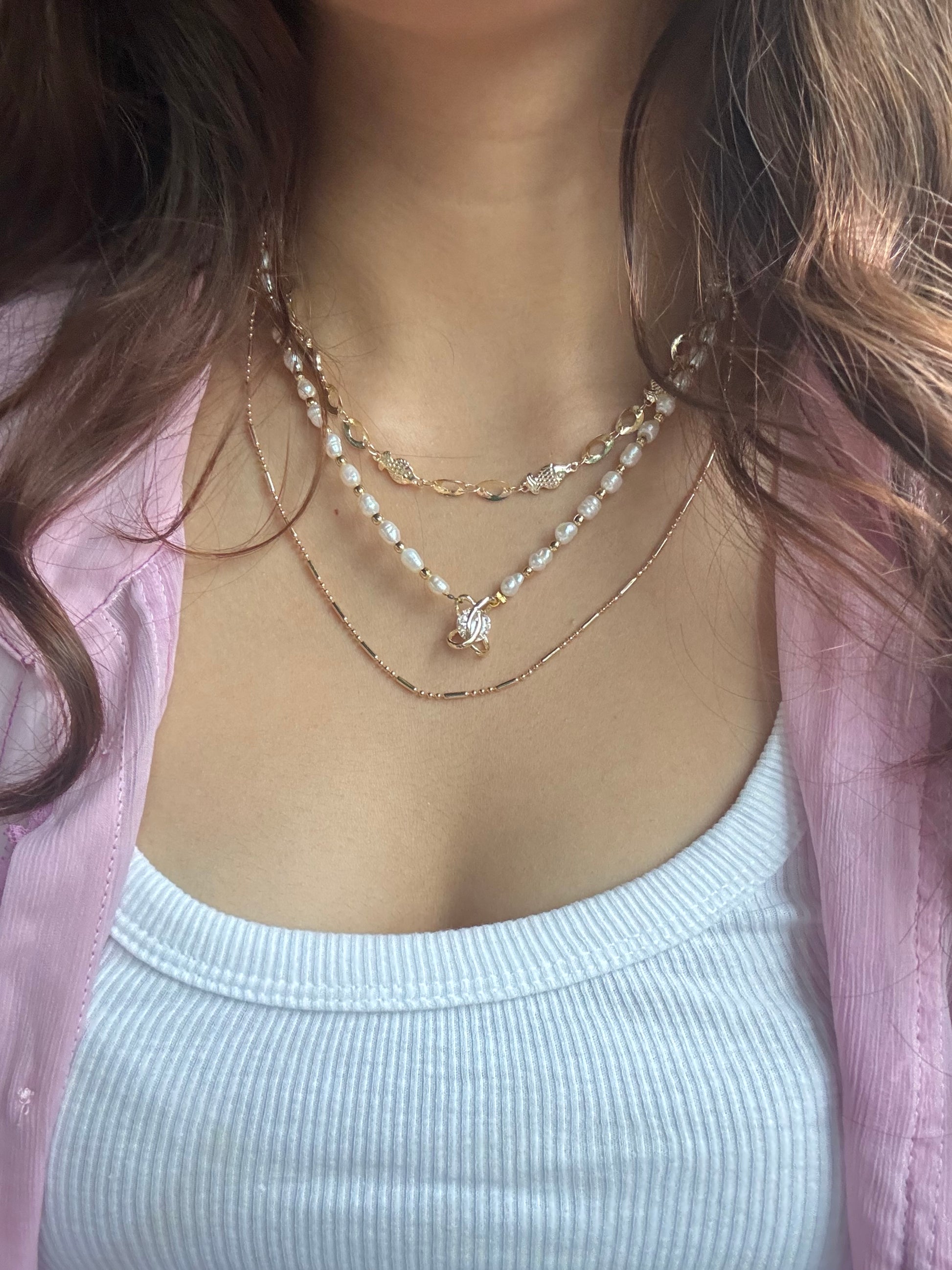 This charming piece pairs dainty freshwater pearls with tiny gold beads, finished with a bee charm at the center—symbolizing joy and abundance. A touch of whimsy for everyday wear.