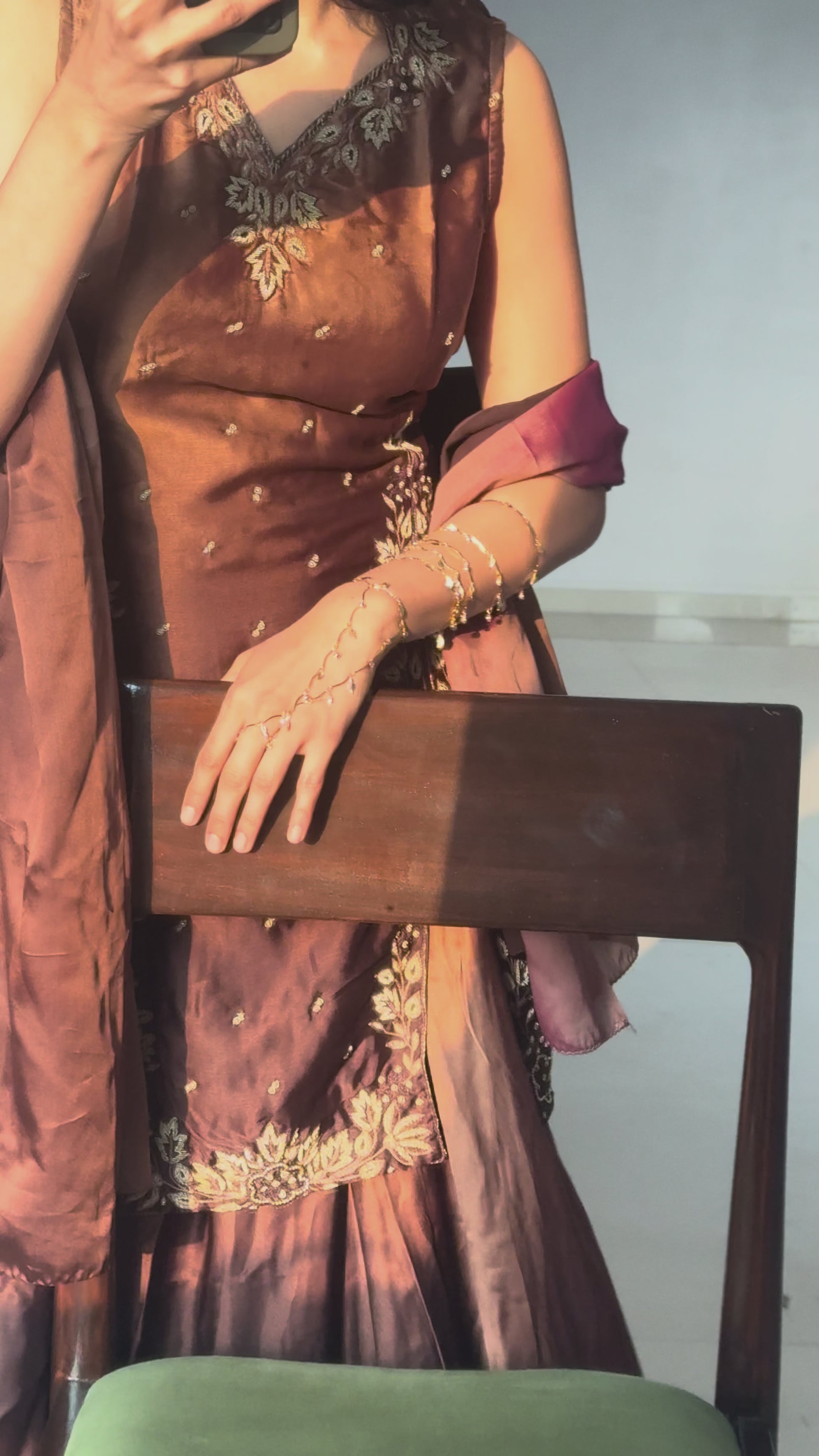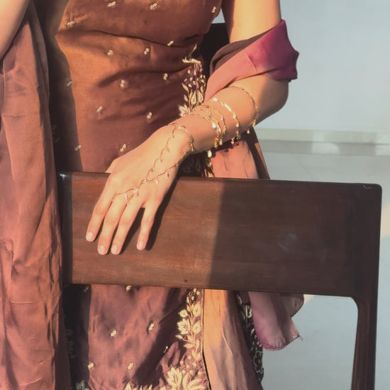 Inspired by winding vineyards, Lata (meaning wine in Hindi) drapes the arm like a delicate vine. Extending from the wrist toward the elbow, it features diamond accents nestled between sculpted leaf motifs, catching the light with every movement.