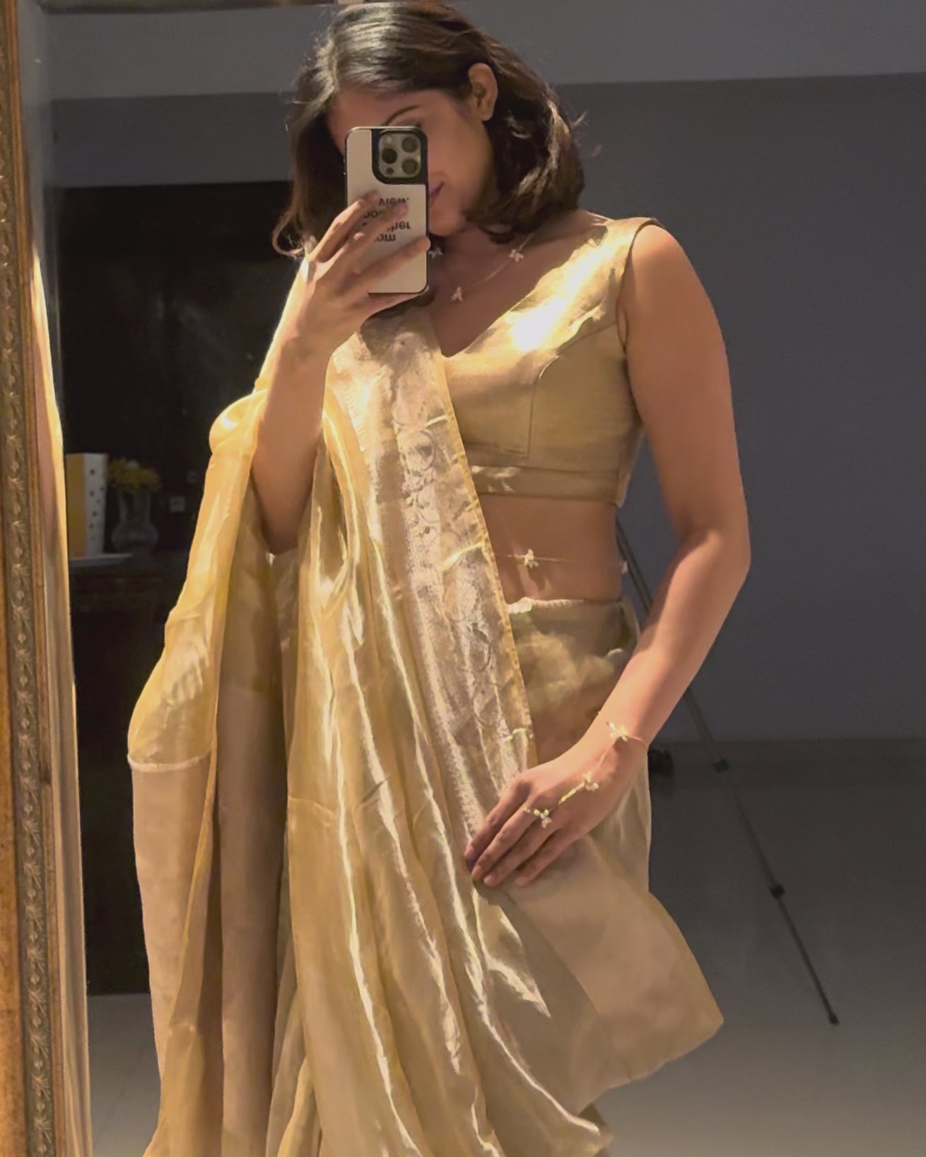 Handcrafted with naturally unique pearls and finished in rich 22-karat gold plating, this necklace sits softly on the collarbone for an effortless, feminine glow. Light, fluid, and refined made for intimate celebrations and everyday elegance alike.