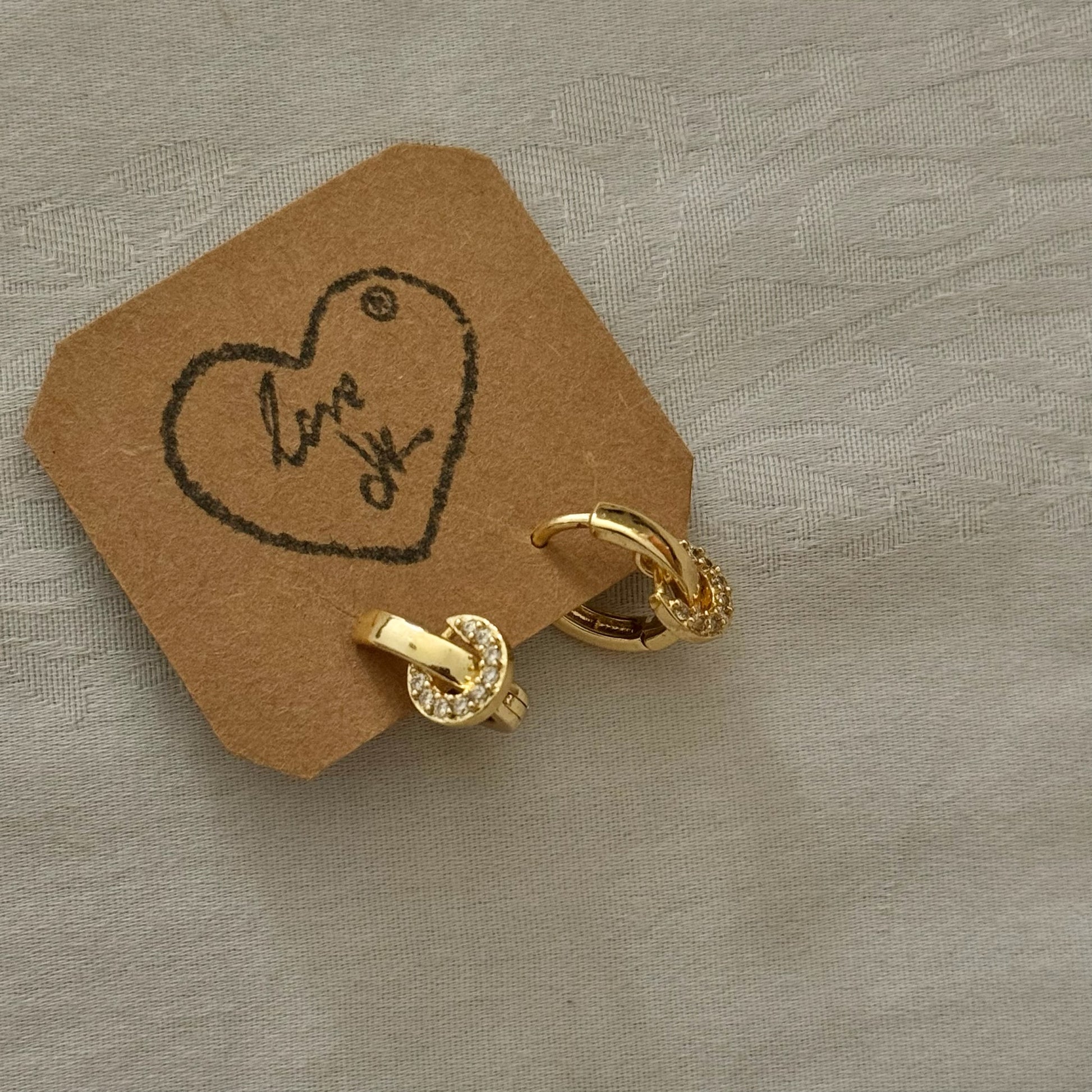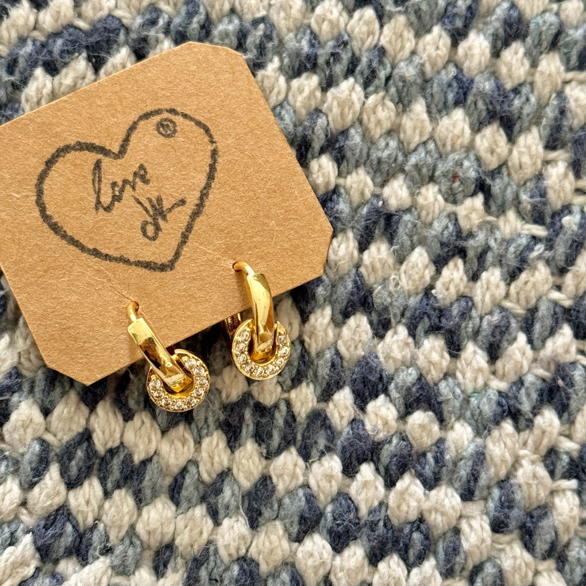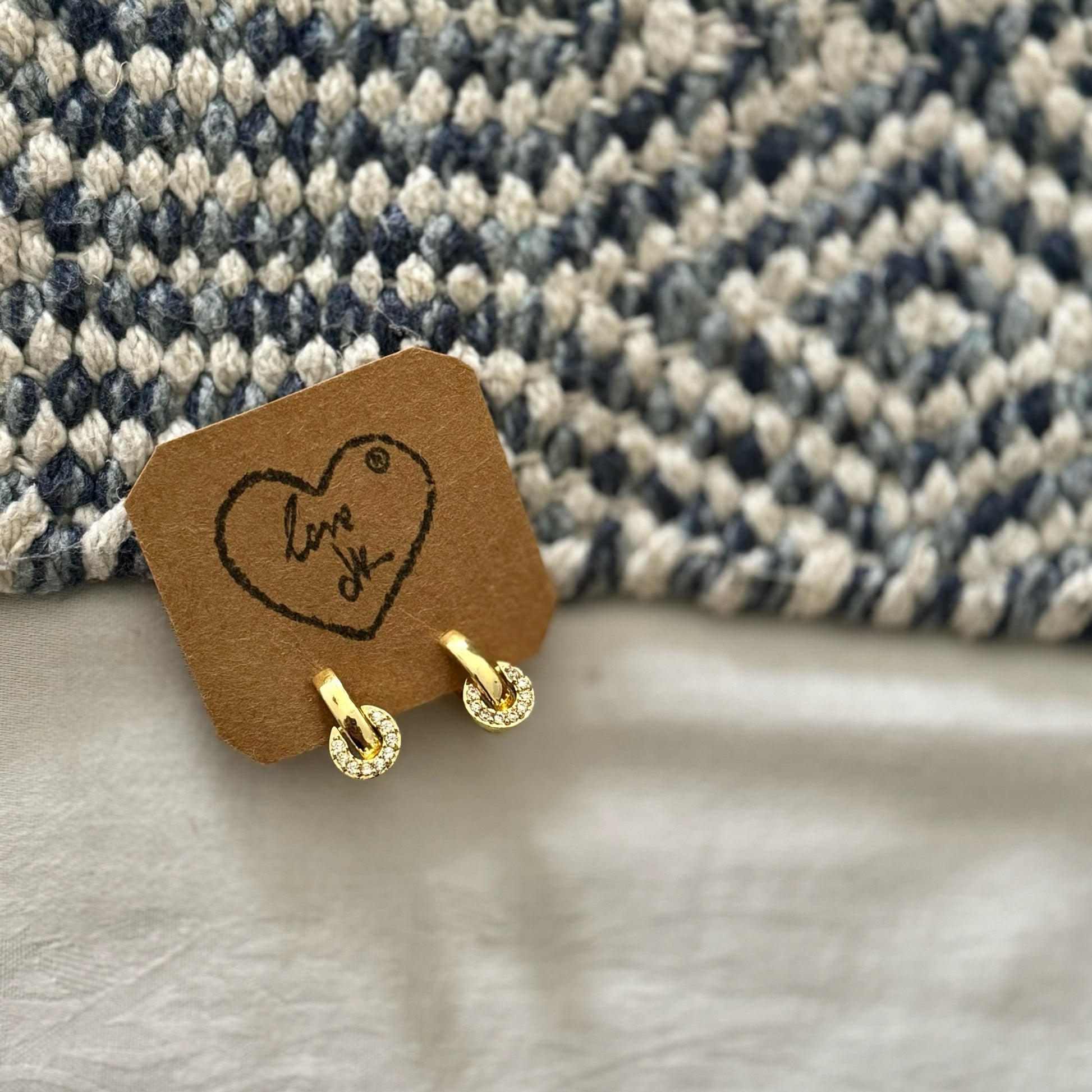 Chic brass circle hoop earrings by Love DK, adorned with sparkling American diamonds. Perfect for adding elegance and glamour to any outfit.